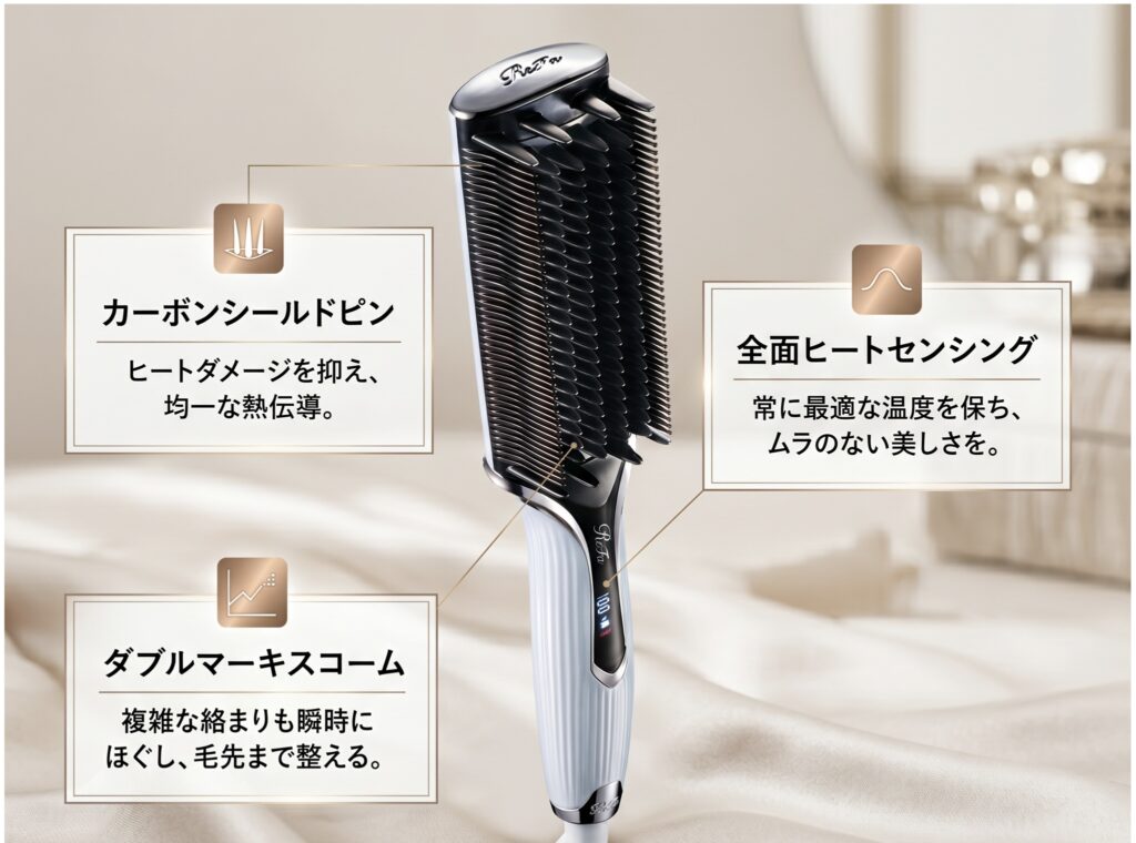 ストレートブローアイロンは美容室で施術する美容師の「プロのブロー技術」をご自宅で再現できるように開発された美容機器です。